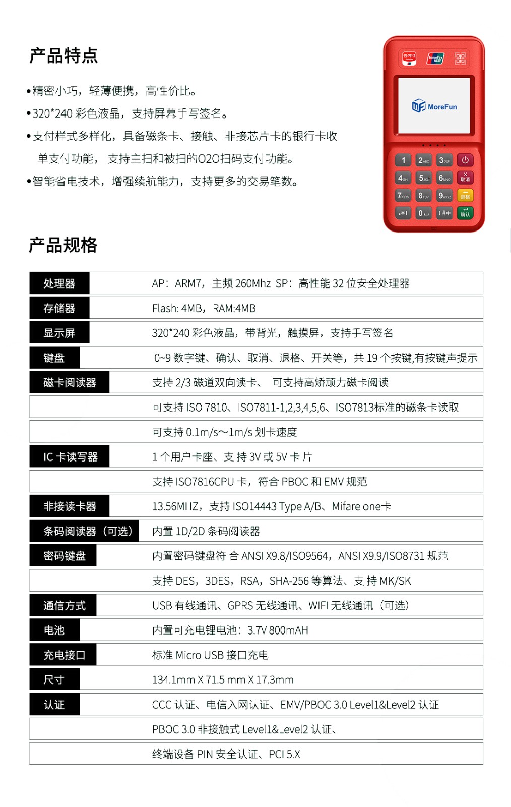 首页>>西城产品中心>>西城手持无线POS 西城联动优势-优POS Pro 高配版 * 性能优越:32位高性能ARM11安全CPU;整机通过业内更先进的PCI PED4.X 安全认证及国内受理终端PIN输入设备安全评估检测认证,多项措施保障金融交易的安全;* 时尚外观:外形小巧携带方便,高抗跌落性能、宽工作温度、防水防尘设计、外壳坚固耐刮、户外携带式作业更加耐久可靠。* 通讯备份:支持2G-3G扩展;* 超长续航:3.7V-800毫安稳定续航能力,智能电池管理保证持续工作18小时,待机72小时。 标准配置 返 回